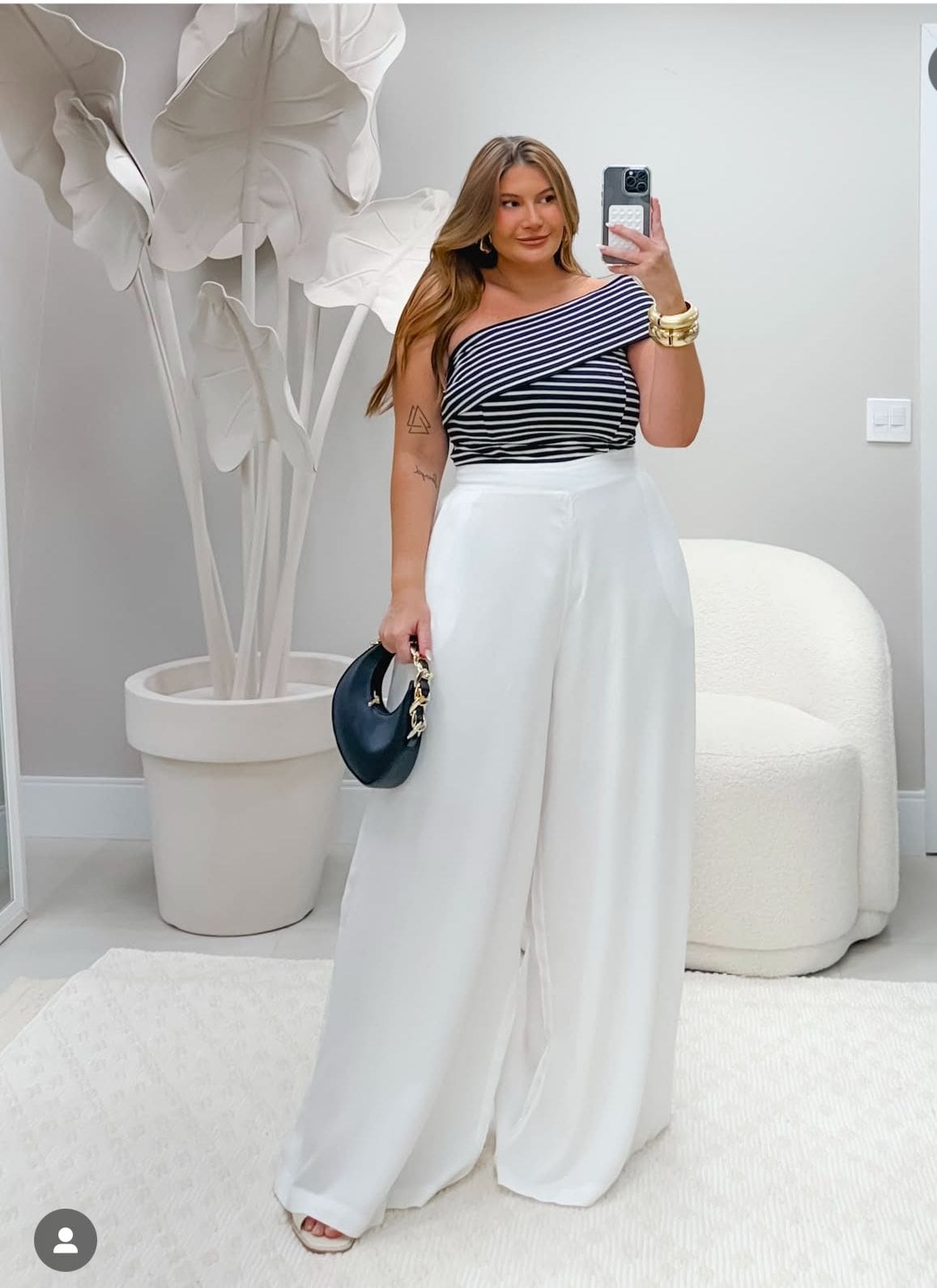 A calça pantalona fluida é uma peça elegante, confortável e cheia de estilo, ideal para criar looks sofisticados ou descomplicados, dependendo de como você combina as peças. Seu caimento solto e fluido proporciona conforto sem abrir mão da sofisticação.