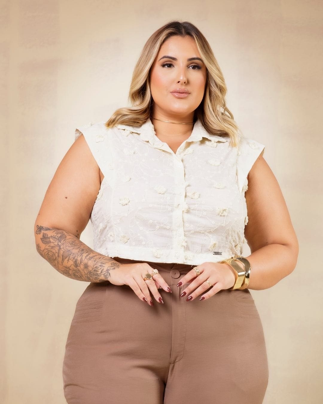 O clássico repaginado com um toque contemporâneo! A Camisa Cropped em Algodão Bordado traz um design sofisticado com botões frontais e mangas curtas, ideal para looks elegantes e despojados. O tecido bordado adiciona um charme especial, garantindo um visual fresh e atemporal.