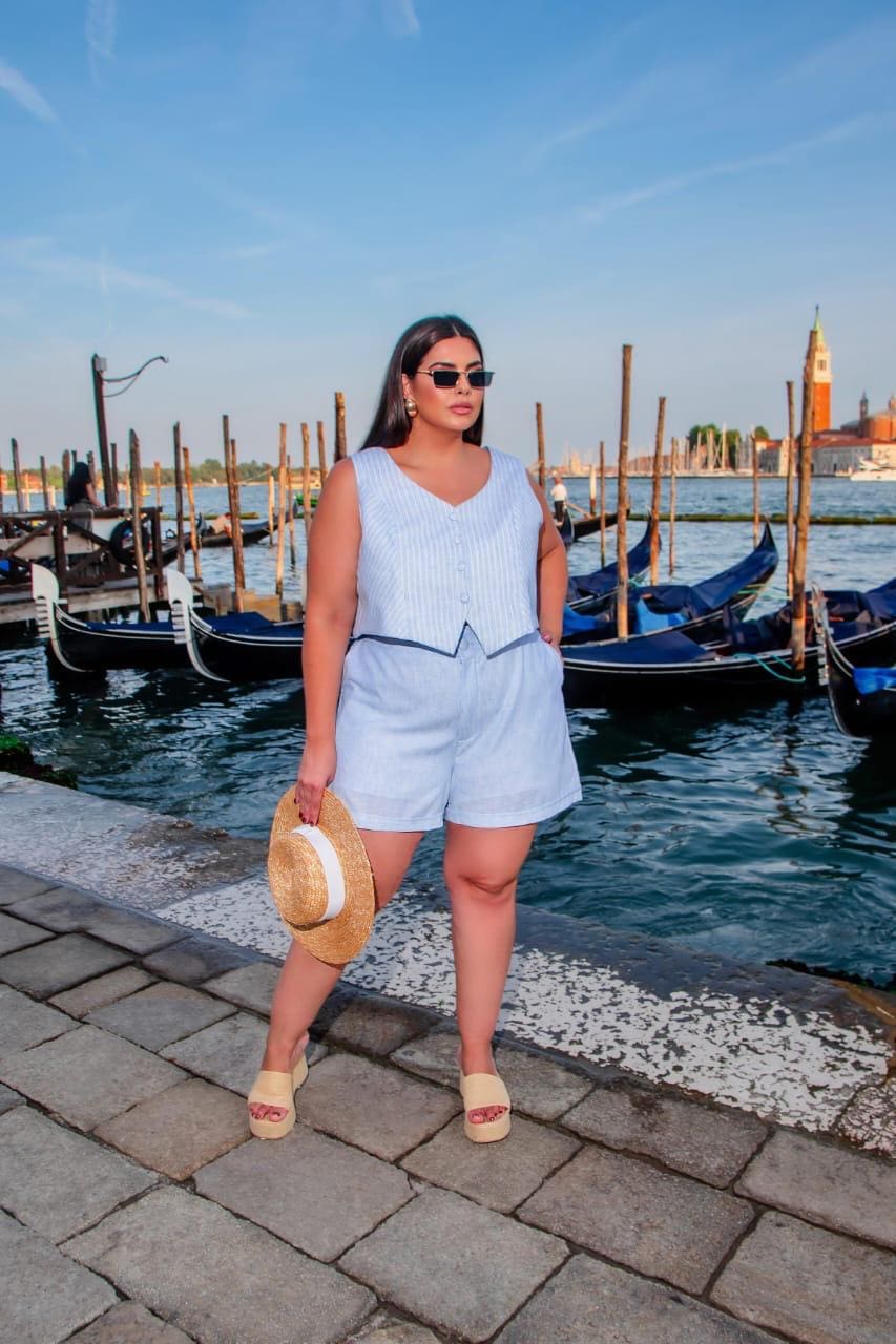 O conjunto de colete e short de linho é uma opção sofisticada, fresca e super versátil. Com um toque de alfaiataria, esse conjunto combina elegância e conforto, sendo perfeito para diversas ocasiões, desde um look casual chic até produções mais refinadas.