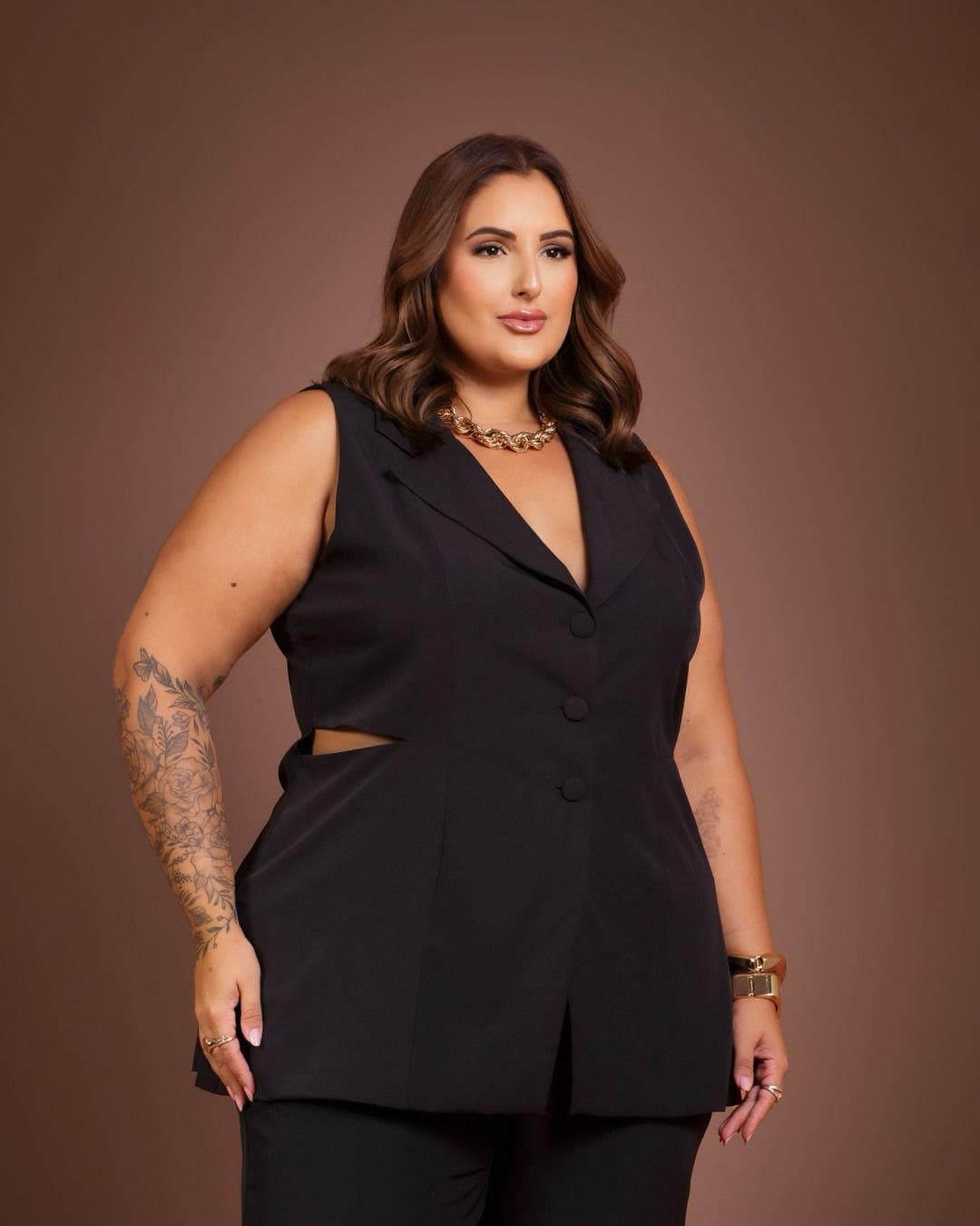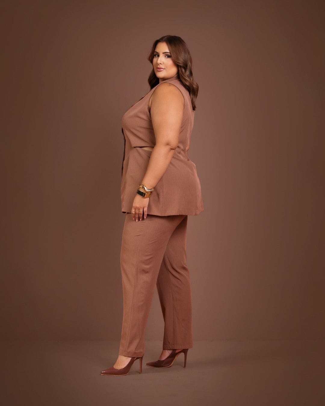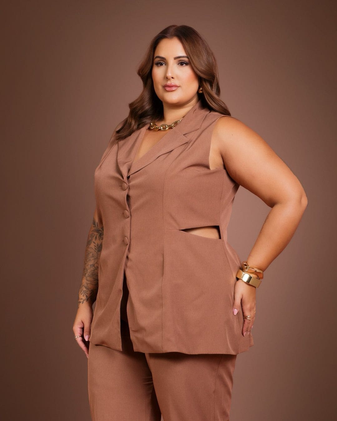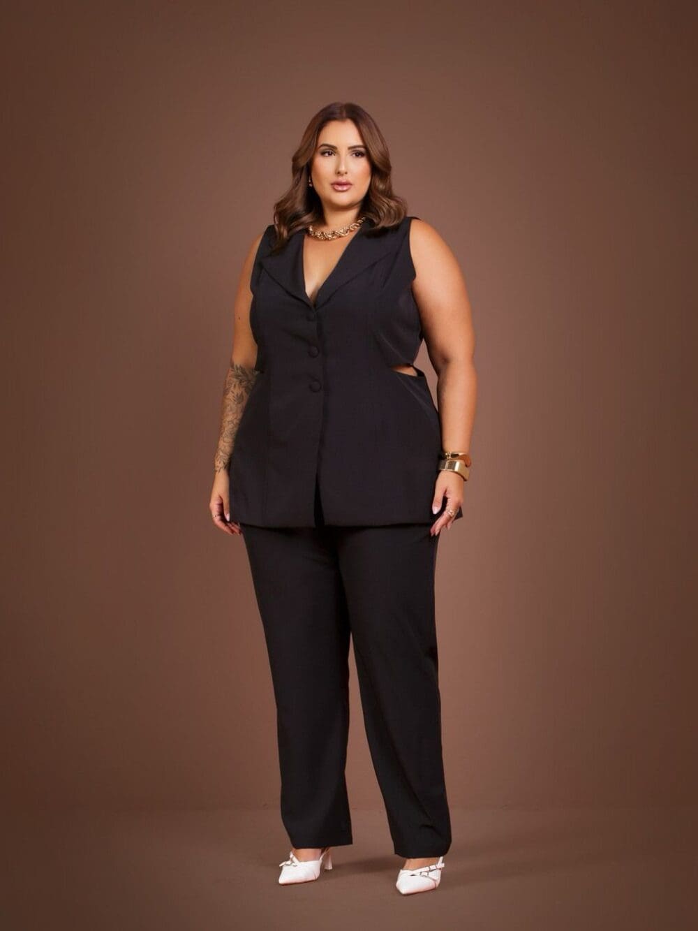 Conjunto elegante, composto por colete estruturado e calça de alfaiataria. O colete traz um design sofisticado com três botões frontais e uma sutil abertura na cintura, valorizando a silhueta com modernidade. A calça apresenta cós reto na frente, elástico na parte de trás para melhor ajuste e fechamento por zíper, garantindo conforto e praticidade. Confeccionado em tecido Espandix com elastano e forro interno, este conjunto une sofisticação e versatilidade, ideal para composições formais e casuais com um toque de moda.