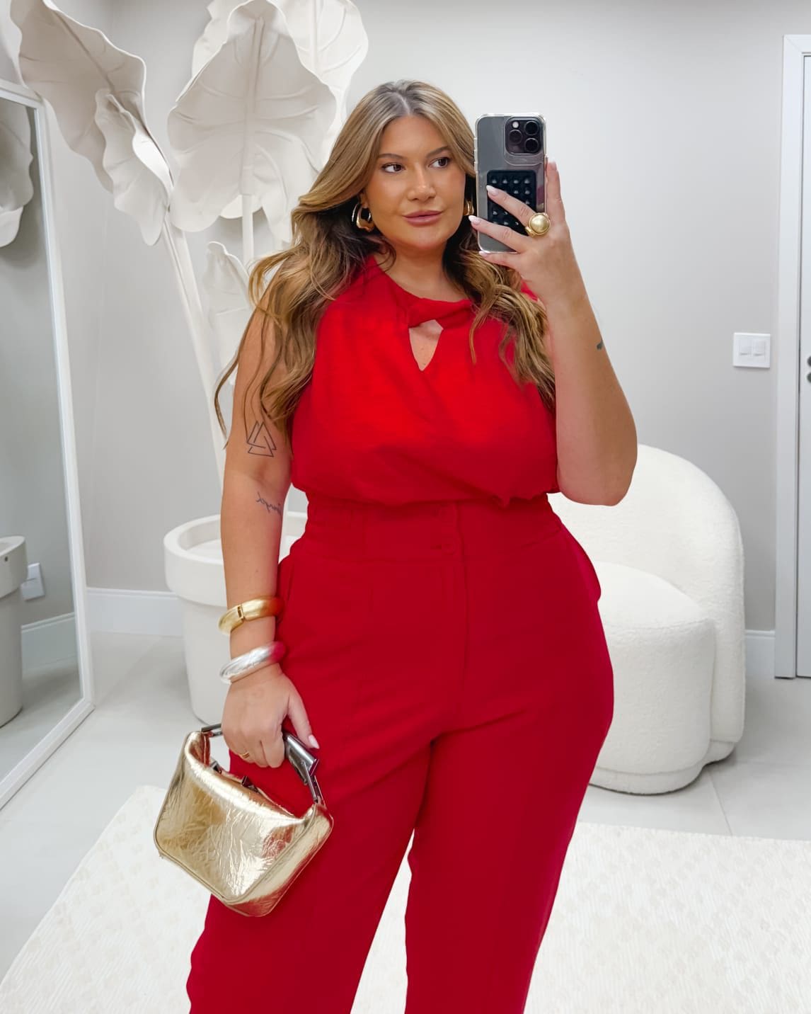 O conjunto de calça e regata vermelha é uma opção moderna e vibrante, perfeita para quem quer um look sofisticado e cheio de energia. O vermelho traz um toque de confiança e atitude, fazendo com que o conjunto seja perfeito para ocasiões especiais, festas ou até mesmo para um dia no trabalho.