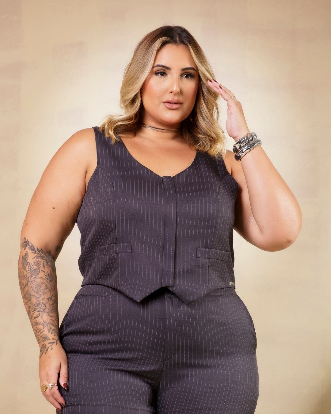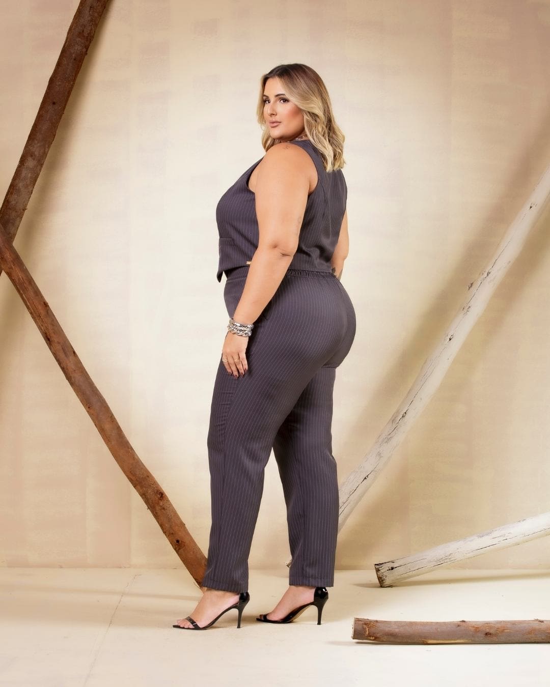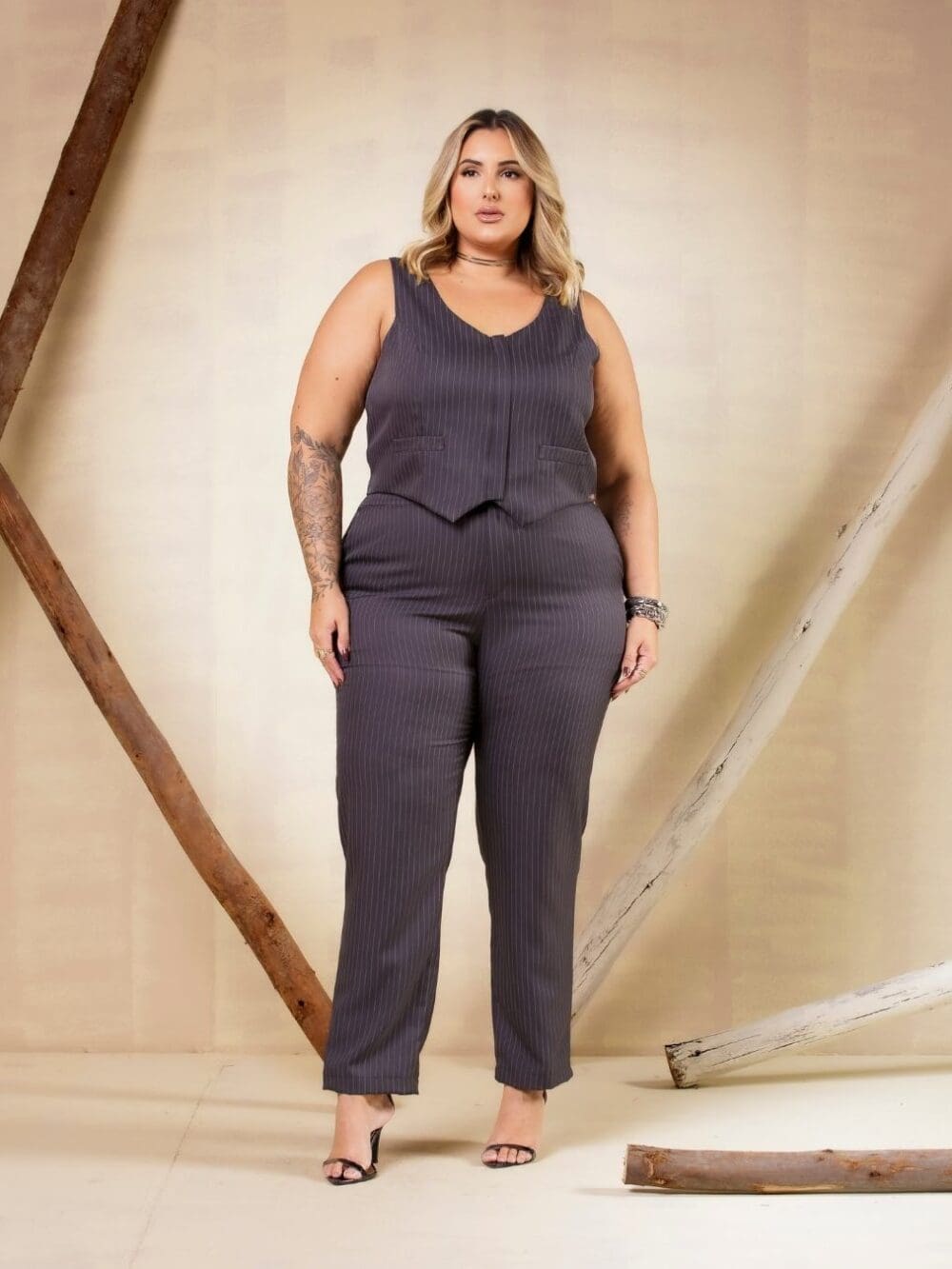 Conjunto Colete e Calça Risca de Giz – Sofisticação Atemporal com Toque de Modernidade