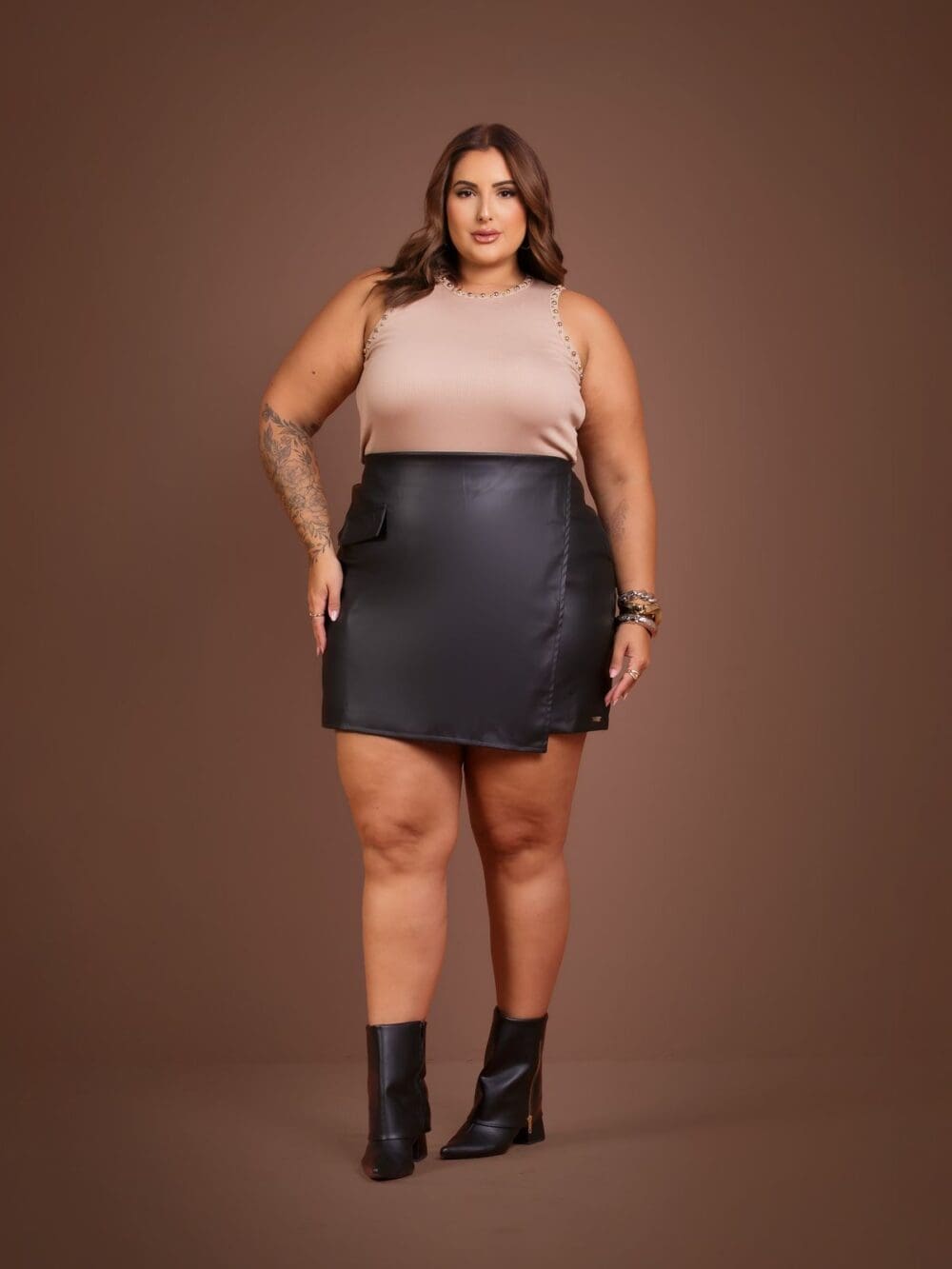 Regata sem mangas com detalhes bordados na gola e nas cavas, agregando sofisticação e delicadeza ao design. A modelagem ajustada realça a silhueta com conforto, enquanto a malha canelada com elastano proporciona flexibilidade e caimento perfeito. Versátil e elegante, essa peça transita facilmente entre composições casuais e refinadas, criando produções modernas e atemporais .