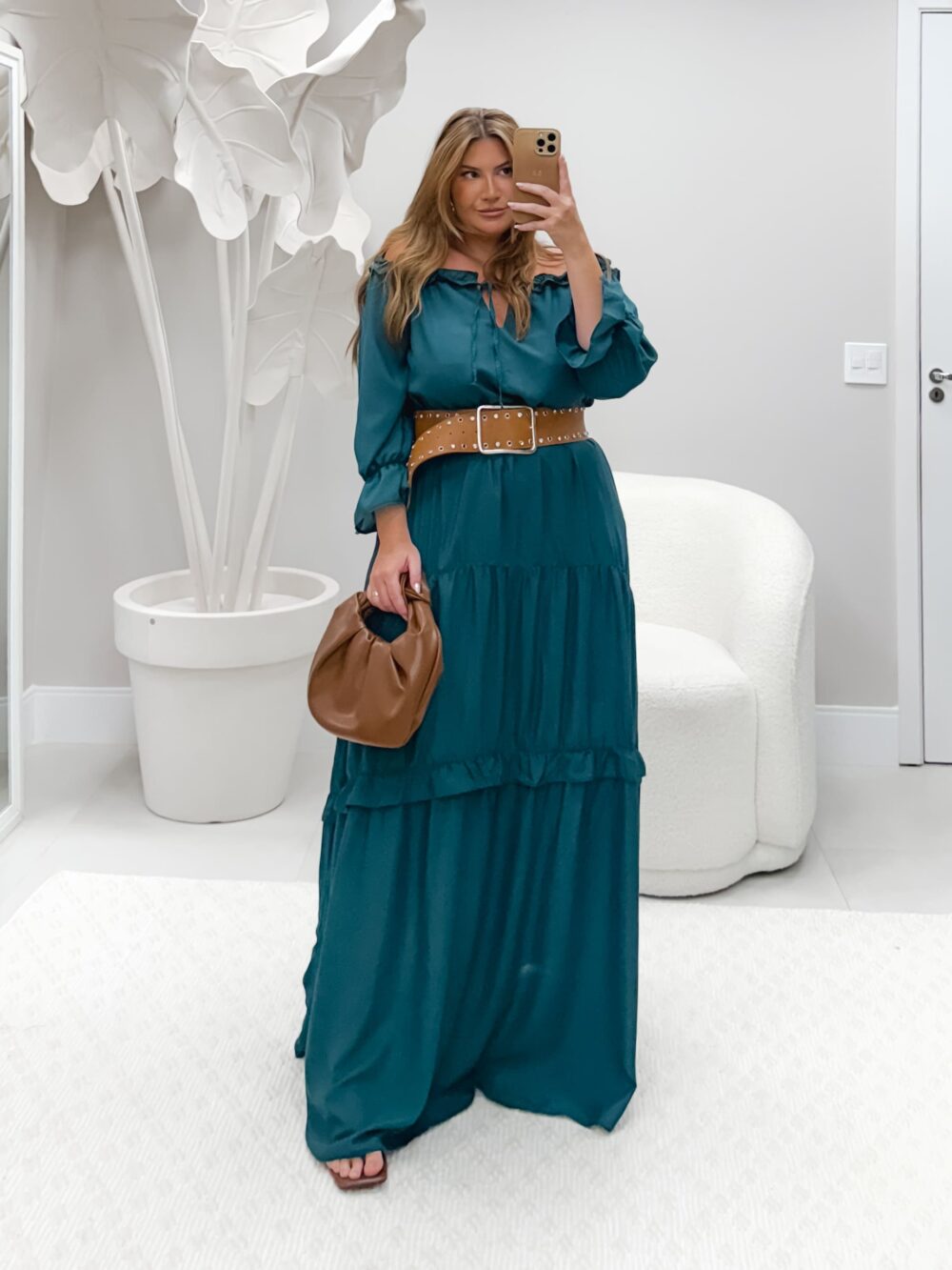 Vestido Longo com Babados combina sofisticação e fluidez em um design Ombro a Ombro que valoriza a silhueta com elegância. Suas mangas 7/8 bufantes adicionam um toque de volume equilibrado, proporcionando charme e conforto. Os babados aplicados estrategicamente trazem leveza e movimento à peça, realçando sua feminilidade. Confeccionado em tecido Misseline, oferece caimento impecável e toque suave, enquanto o forro interno garante conforto e segurança ao vestir.